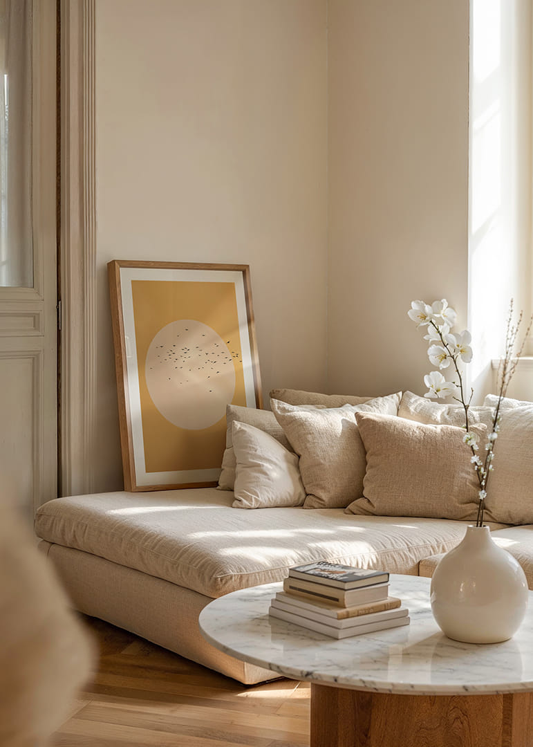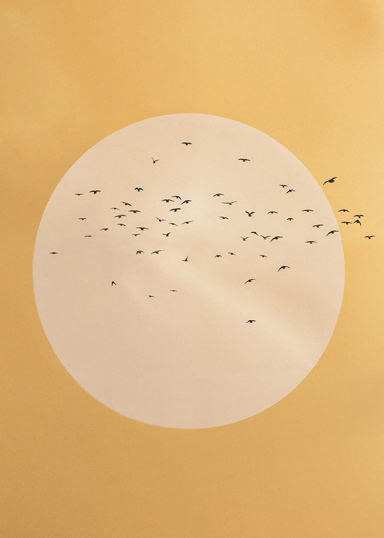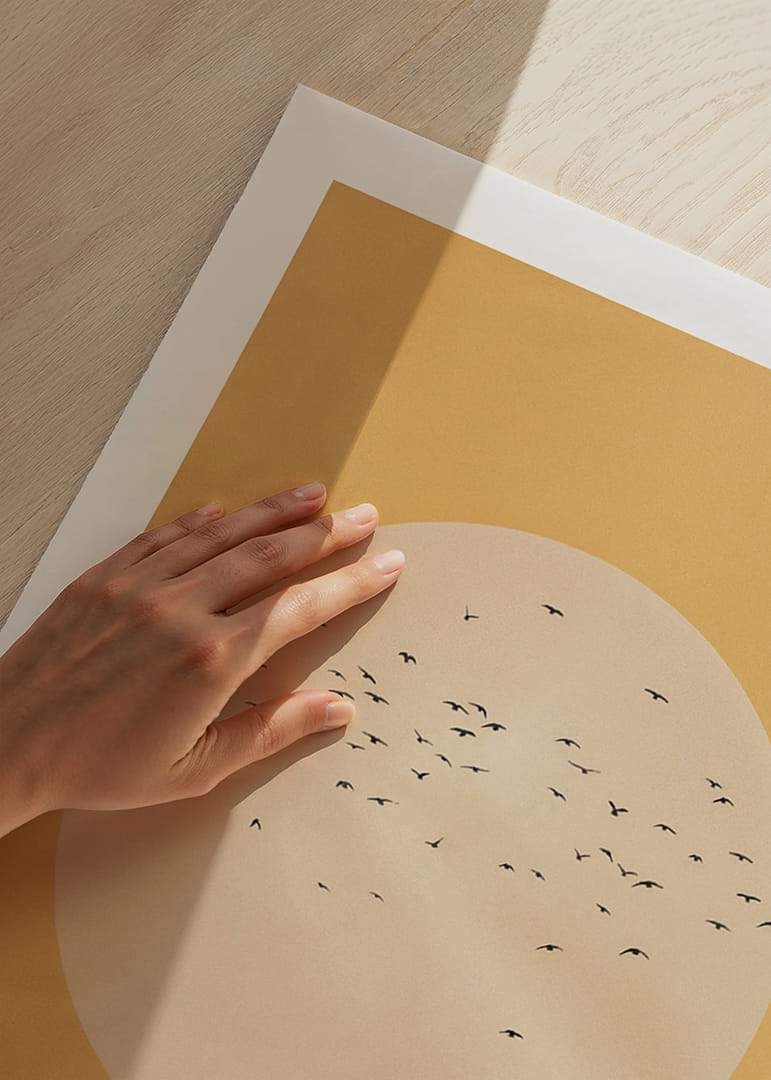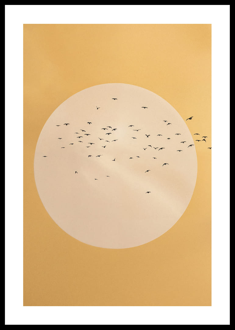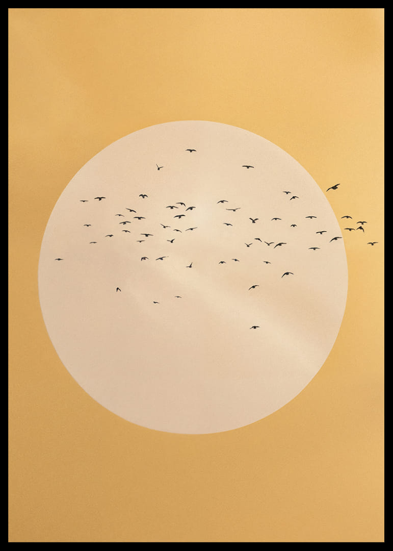 See plakat jäädvustab vabaduse olemuse, kui linnuparv kuldse sfääri sees soojal taustal liugleb. Minimalistlikud jooned ja pehmed värvitoonid loovad harmoonilise ja rahumeelse tunde. Sellest plakatist saab teie elutoas võimas vabaduse ja rahu sümbol, andes avaruse ja lõputute võimaluste tunde. Kunsti ja looduse täiuslik kombinatsioon.