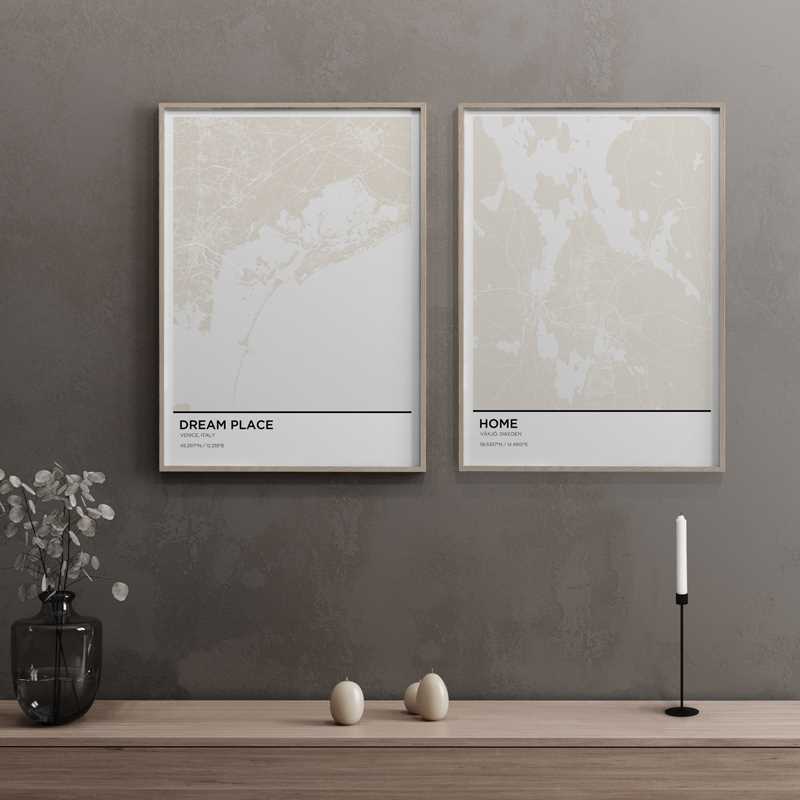 Kohandatud kaardiplakat ei ole lihtsalt kaart. Kohandatud kaardiplakat on isikupärastatud unikaalse kujundusega kaart, mis on loodud paiga või kohas toimuva olulise sündmuse põhjal, mis sageli tähendab midagi väga erilist. Kus sa sündisid? Kus sa üles kasvasid? Kus sa elad? Kus te kohtusite või kus abiellusite? Võimalused on lõputud, kui loote oma ainulaadse kaardiplakati maailmakaardi, linnakaardi, kuulsa või mitte nii kuulsa kohana maailmas. Millise koha valid?